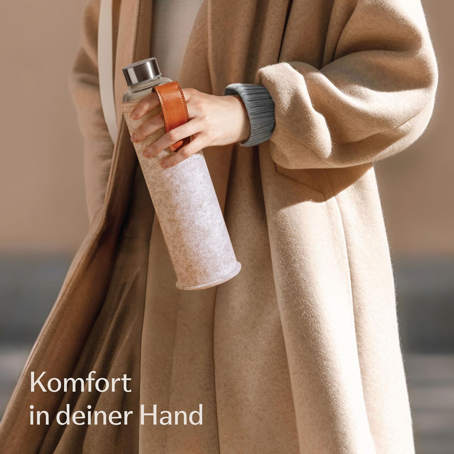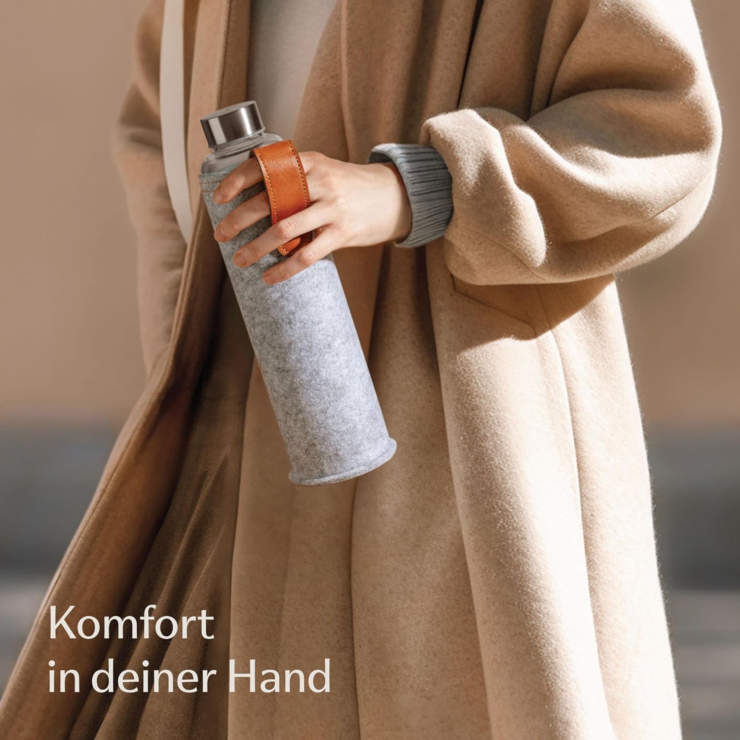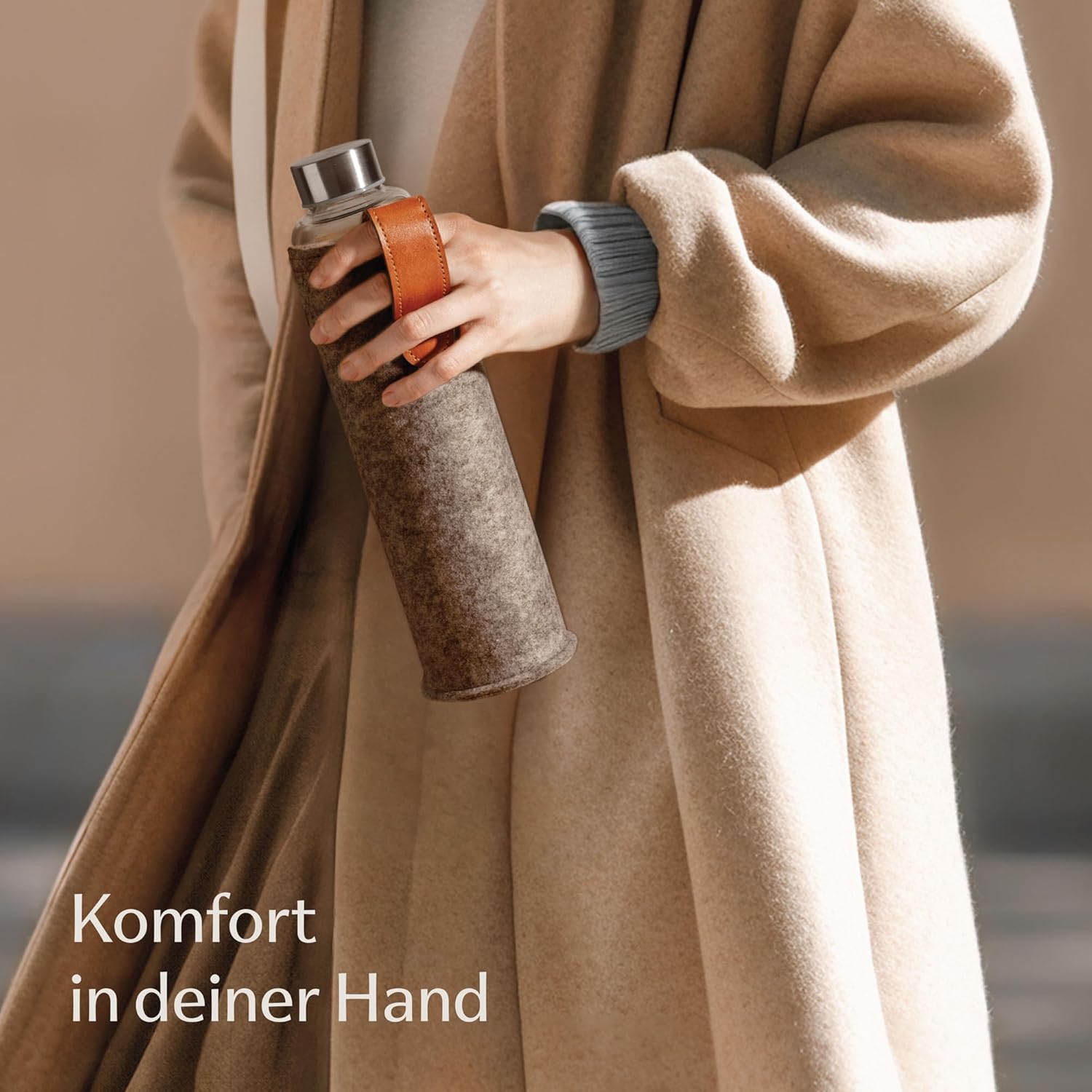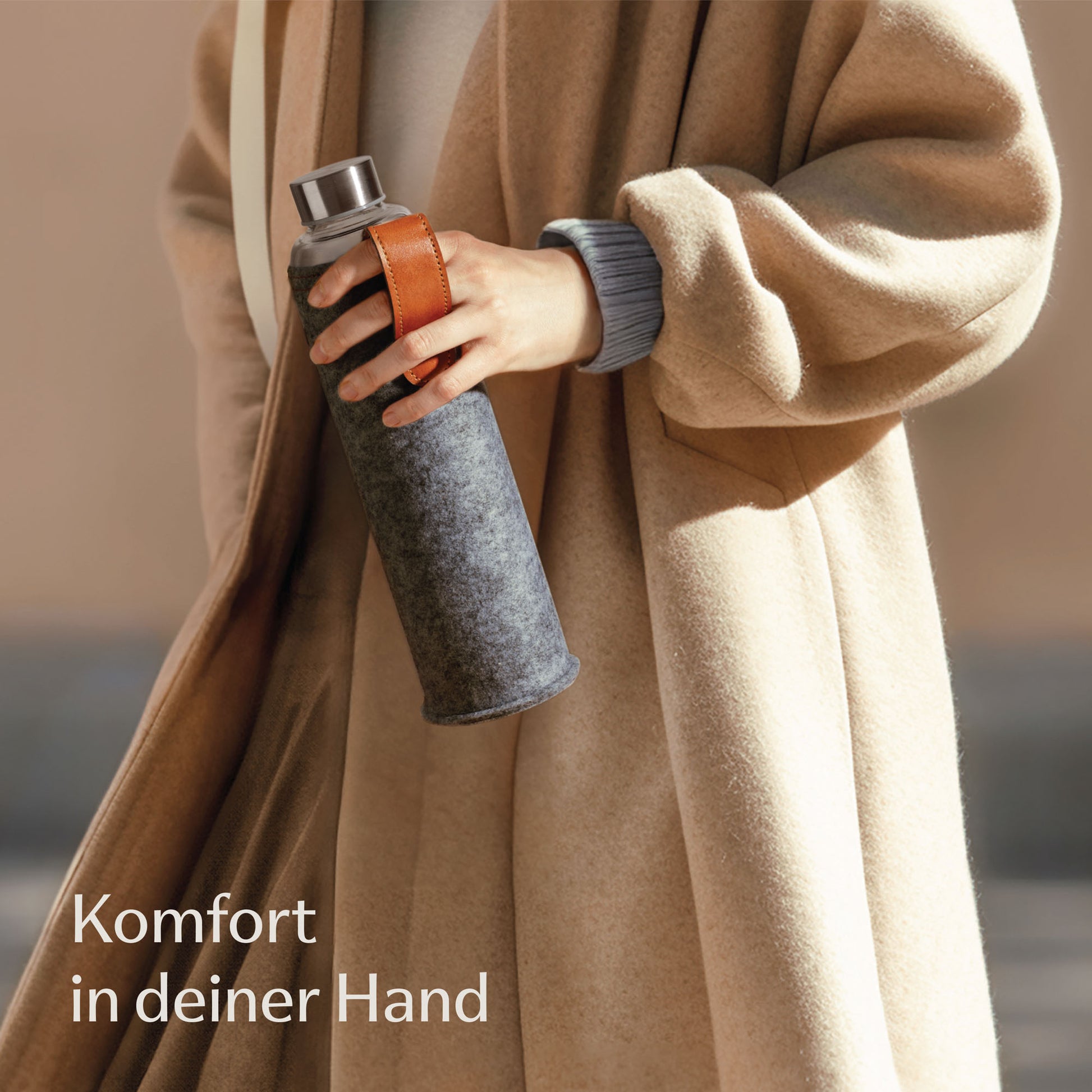 - Glasflasche mit isolierender Filztasche & auslaufsicherem Deckel