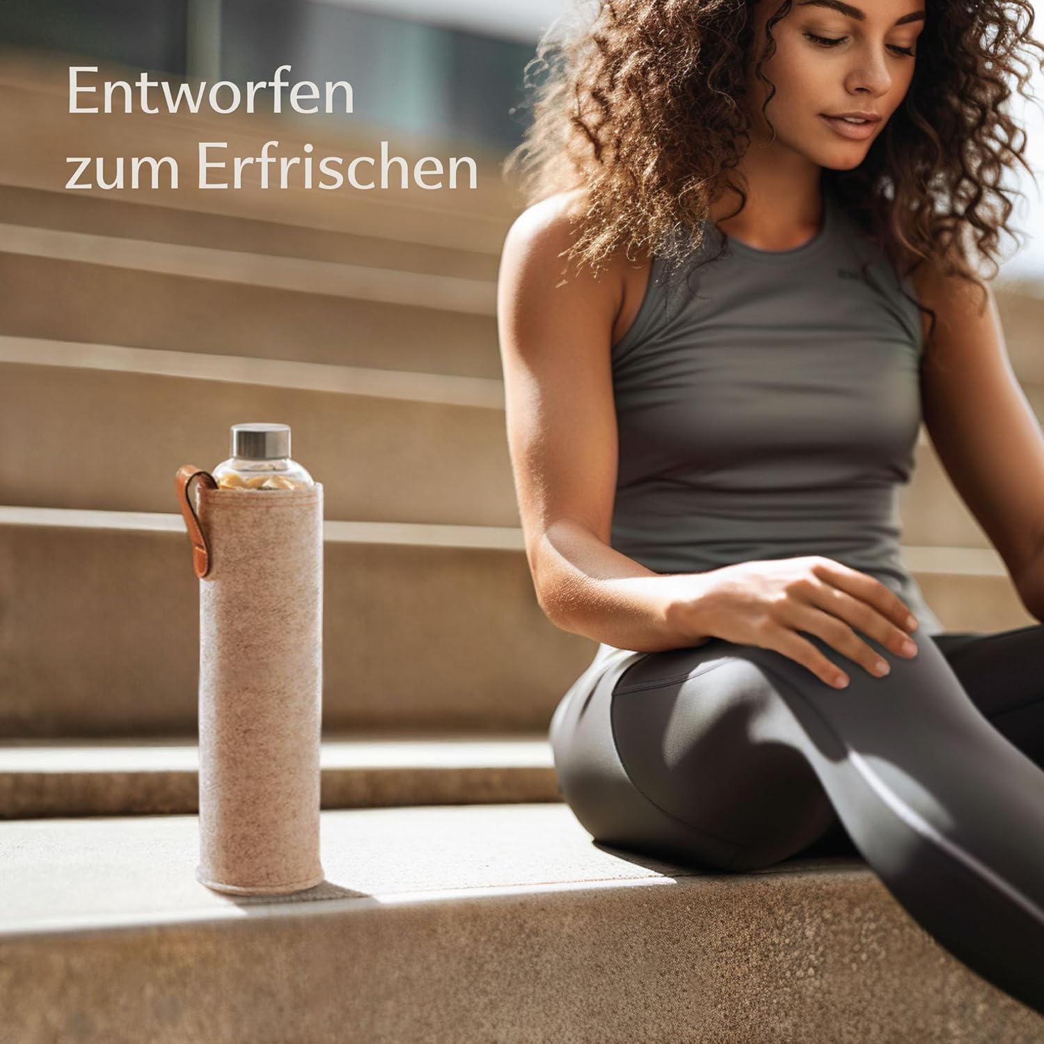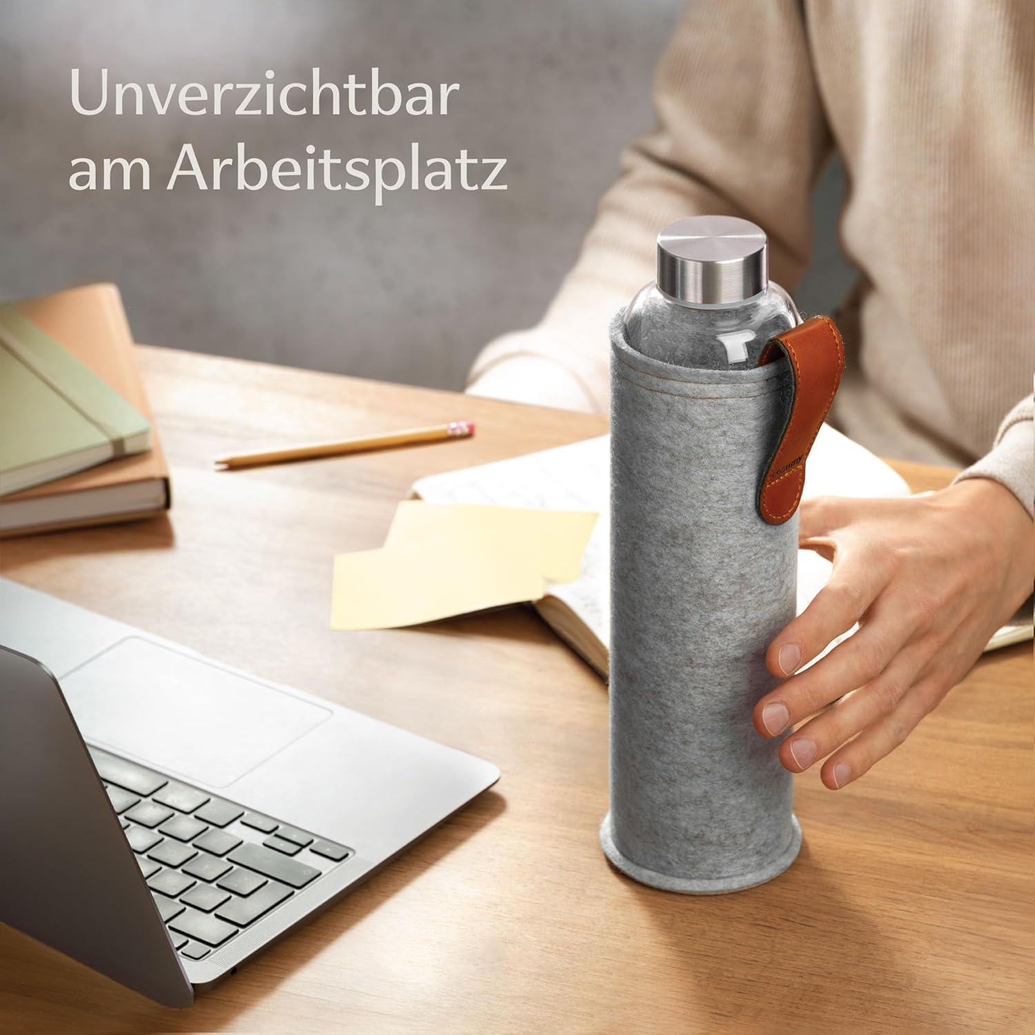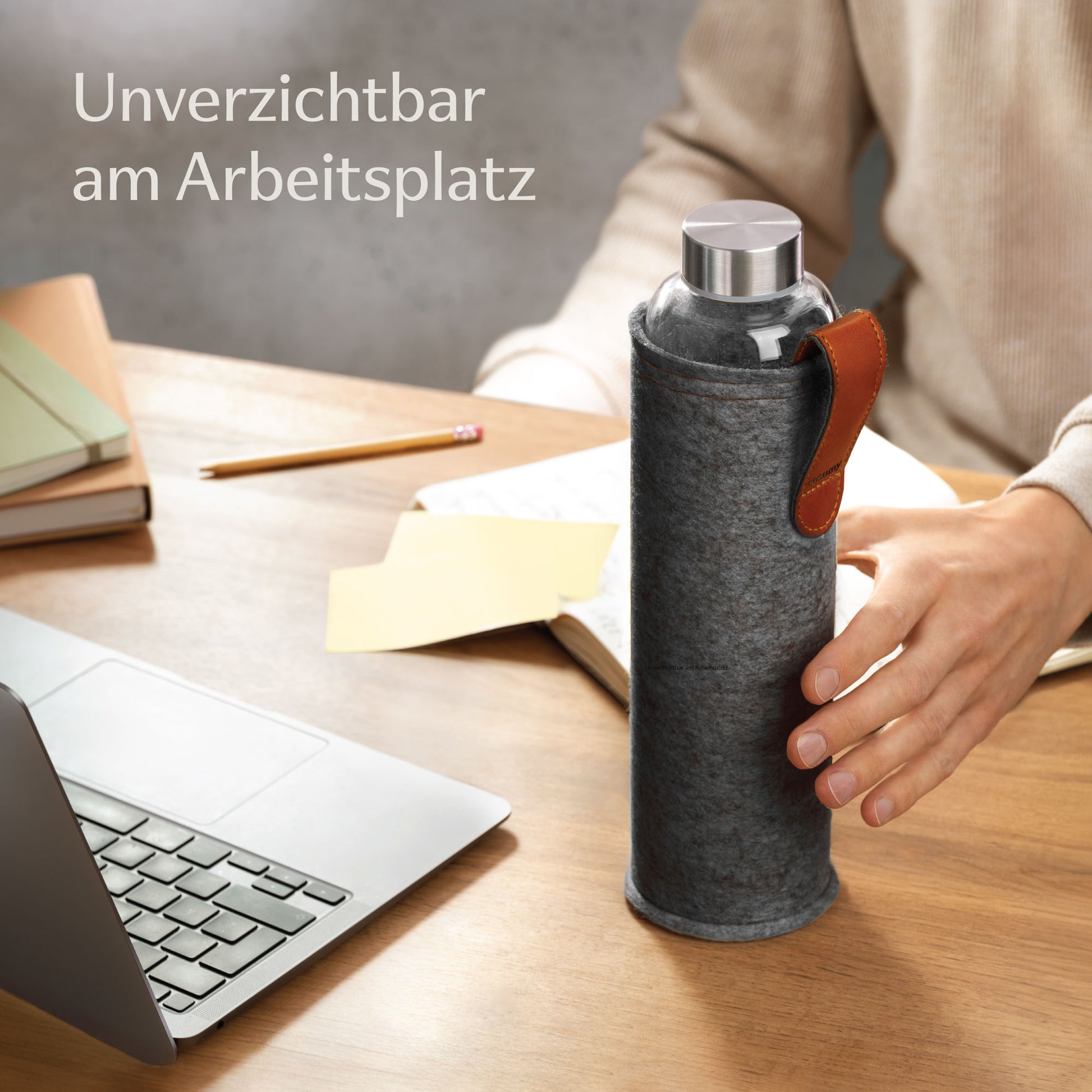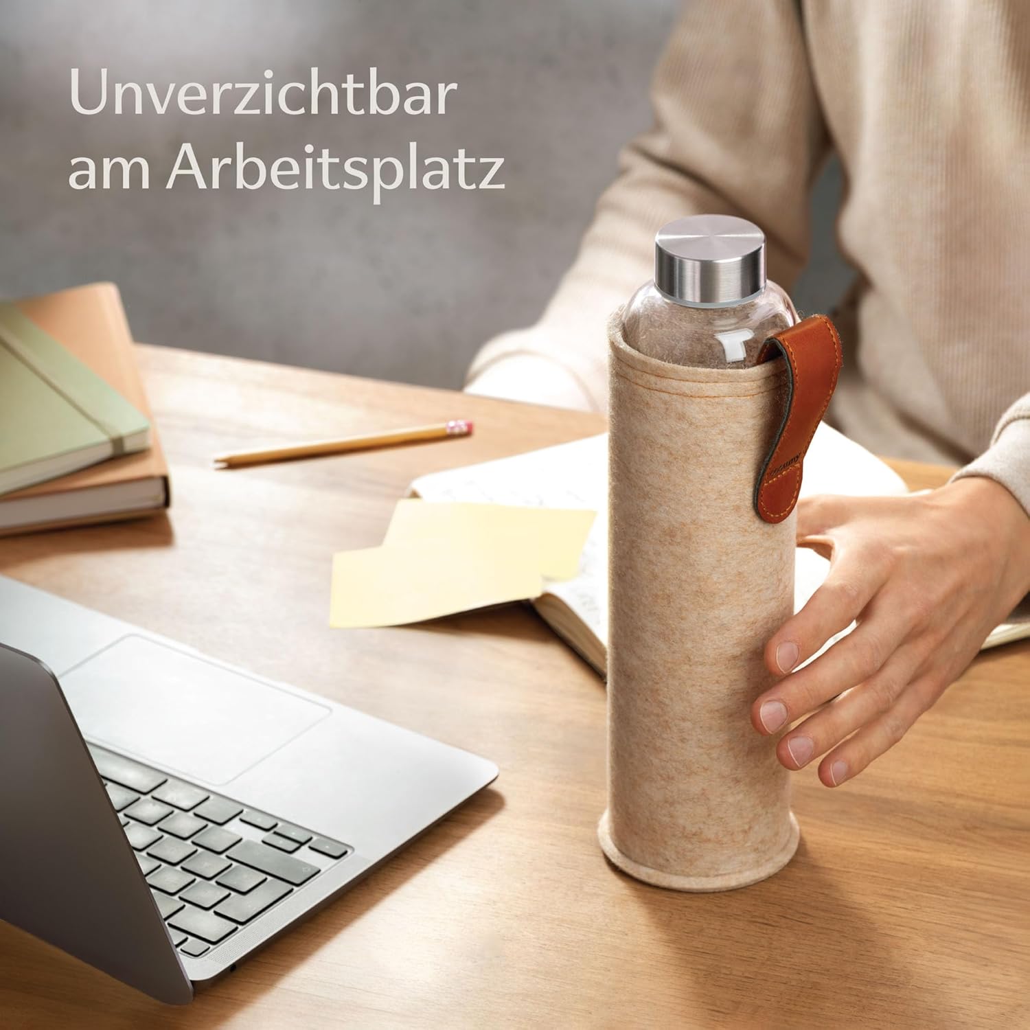 - Glasflasche mit isolierender Filztasche & auslaufsicherem Deckel